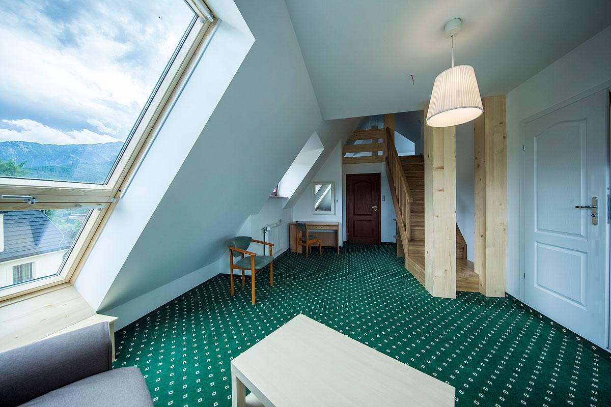 Мы прапануем сваім гасцям камфартабельныя аднамесныя, двухмесныя, трохмесныя і чатырохмясцовыя нумары. Вы таксама можаце зняць функцыянальна абстаўленую кватэру плошчай каля 40 м² са спальняй і зонай адпачынку з канапай-ложкам. Кватэра забяспечвае выдатныя ўмовы для пражывання з вялікай групай сяброў або сям'ёй. Мы прапануем жыллё для кампаній, якія арганізуюць трэнінгі і канферэнцыі ў гэтым установе, а таксама для індывідуальных кліентаў, у тым ліку сем'яў з дзецьмі, якія прыязджаюць у Закопане на адпачынак.